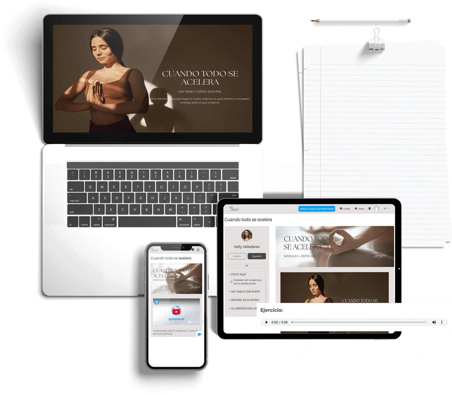 Recibirás acceso al contenido del curso vía email y podrás descargar los audios MP3 y las guías PDF para uso personal. Si necesitas ayuda técnica o tienes dudas durante el proceso, escríbenos a hola@kellyvalladares.com y te acompañamos.